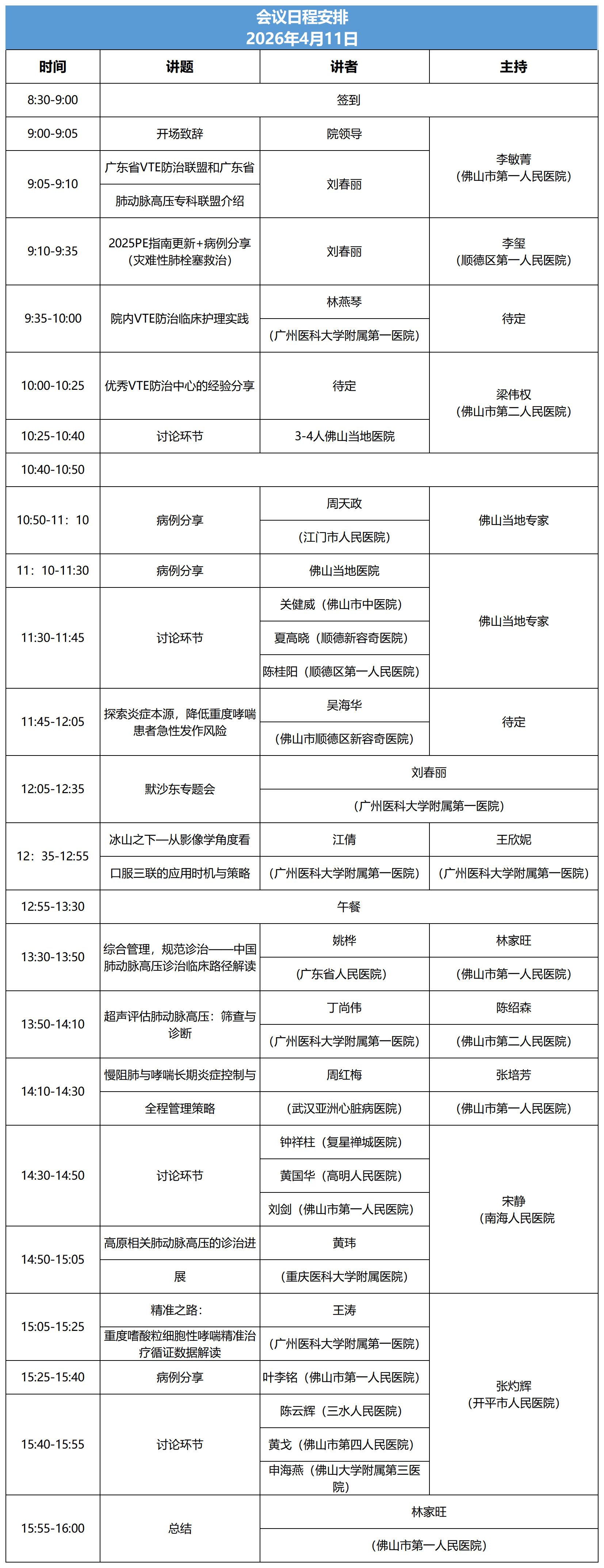 会议名称:多学科共话血栓与肺动脉高压会议暨慢性气道炎症专场城市会——佛山站